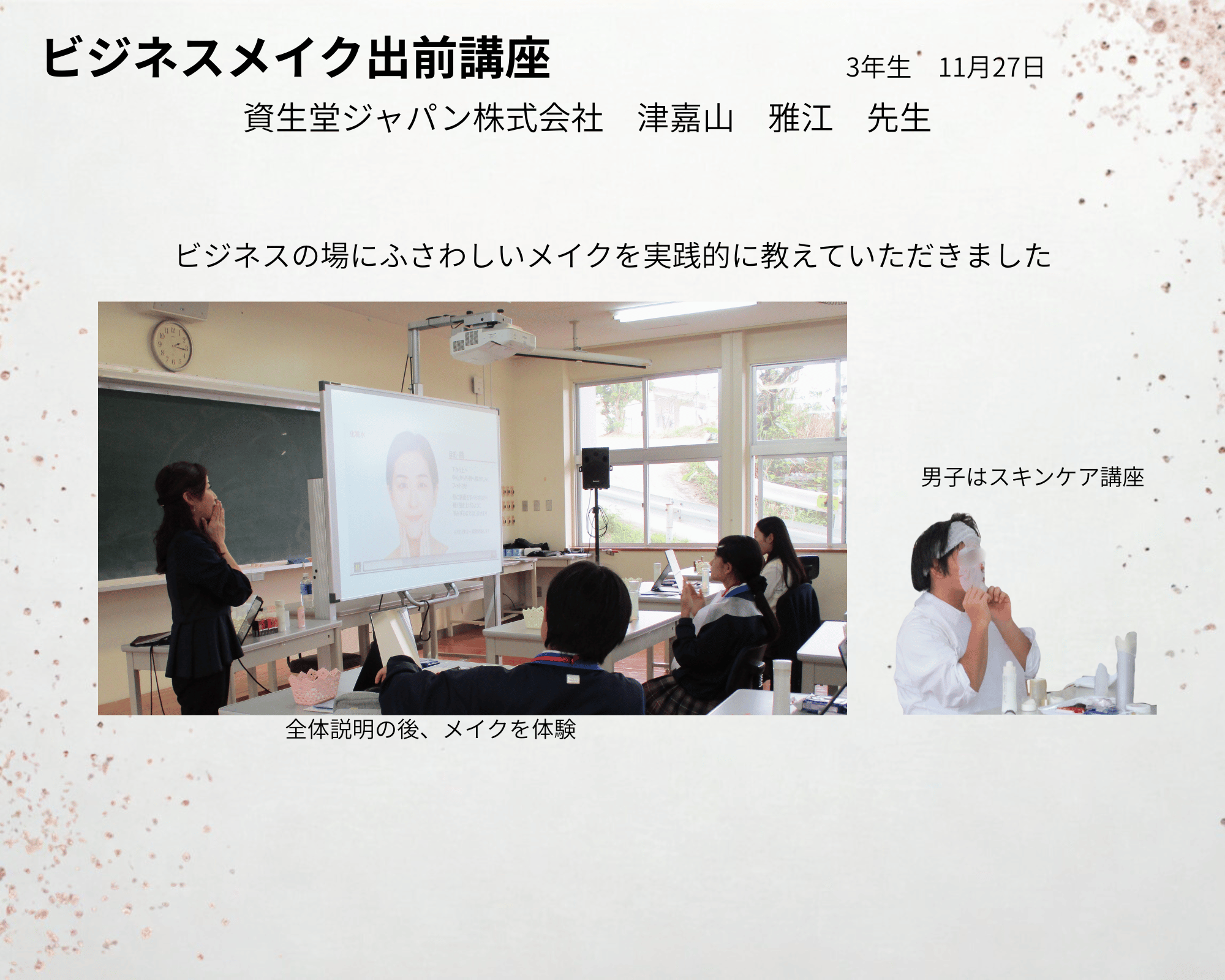 オフィスクリエイト科3年生を対象としたビジネスメイク講座を資生堂ジャパンより